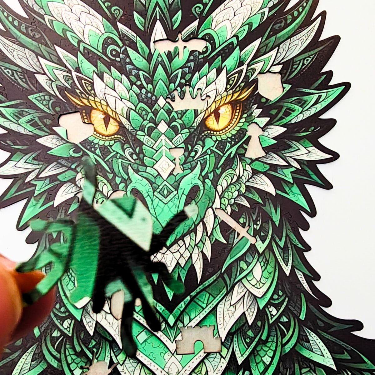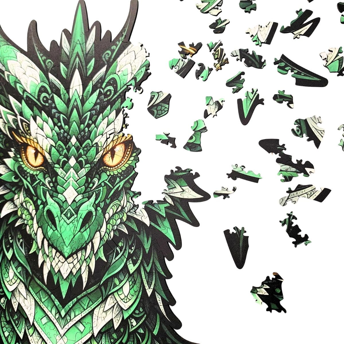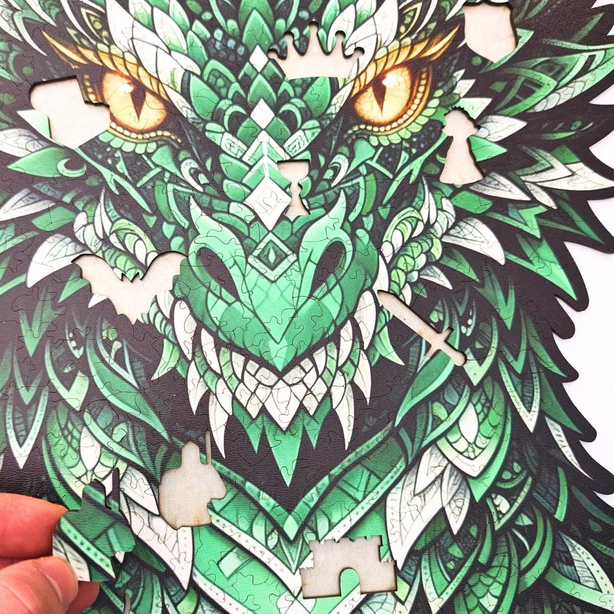 Bring a legendary dragon to life with the Dragon of Wisdom wooden jigsaw. This artistic, shape-cut puzzle features detailed, high-resolution artwork and 415 precision laser-cut pieces made from durable HDF (3 mm). The finished puzzle measures 54 × 37 cm, making it an impressive decorative piece once completed.